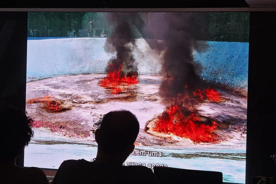 Mais sobre o artista Lucio Salvatore em frente ao MAM Lucio Salvatore (1975) é um artista ítalo-brasileiro que vive e trabalha entre o Rio de Janeiro e a Itália. Nascido e criado em Sant’Elia Fiumerapido, no sul da Itália, estudou em Milão, onde cursou economia e filosofia. Em 1999, chegou ao Rio de Janeiro pela primeira vez. Nos anos seguintes, sua carreira se desenvolveu entre o Brasil e Nova York, onde explorou a fotografia. No Rio, frequentou a Escola de Artes Visuais Parque Lage. Sua pesquisa parte da condição de estrangeiro, entendida não apenas como um fato biográfico, mas como uma posição de cruzamento, deslocamento e redefinição contínua do olhar. Dessa perspectiva, emerge uma obra que conecta o pensamento abstrato e as narrativas históricas, questionando as maneiras pelas quais a memória, o território, a matéria e a experiência sensorial moldam presenças instáveis, identidades em transição e sistemas de pertencimento que nunca são definitivos. Influenciado por questões ecológicas, políticas e culturais, seus trabalhos exploram o tempo e as fronteiras não como simples temas, mas como princípios ativos de pesquisa.